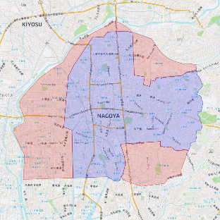 東京都23区、大阪市(中央区、浪速区、西区、北区、西成区、福島区、淀川区)、京都市(中京区、下京区)、神戸市(中央区)、福岡市(中央区、博多区)など