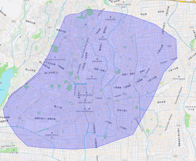このサービスエリア内ならUber Eatsの注文ができますし、Uber Eatsの配達という自由な仕事もできます