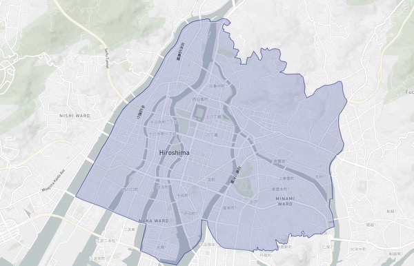 ウォルトの広島での配送可能エリアは、ざっと見たところ、広島市中区を中心に、南区、西区、東区の一部が対応エリアになっています。